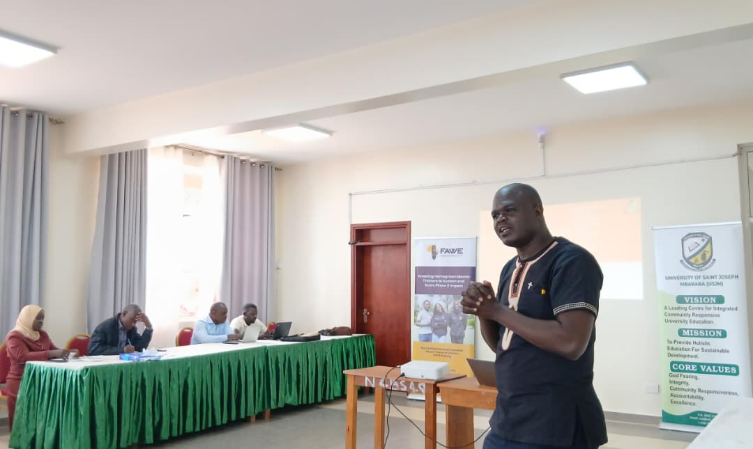 The University of Saint Joseph Mbarara continues to strengthen academic excellence through its ongoing curriculum development training for staff. On Day 2, academic personnel responsible for curriculum design actively engaged in sessions facilitated by a team of HEAC technical experts. The training brings together expertise from Busitema University, Muni University, and Mbarara University of Science and Technology, with additional support from FAWE Uganda. The initiative aims to enhance the quality, relevance, and effectiveness of academic programs offered at USJM.